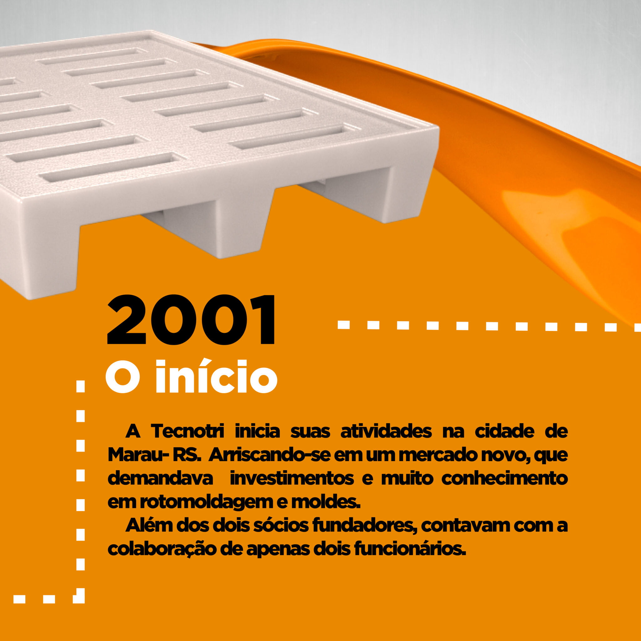 Fundada no dia 18 de maio de 2001, em Marau, no Rio Grande do Sul, a Tecnotri iniciou a sua com a ideia dos sócios Leonardo Segatt e Maurício Scorteganha de fabricar peças para uma empresa da cidade. O desafio era grande, pois além de abrir o negócio, eles precisaram se arriscar em um mercado novo, que demandava investimentos e muito conhecimento de rotomoldagem e moldes.