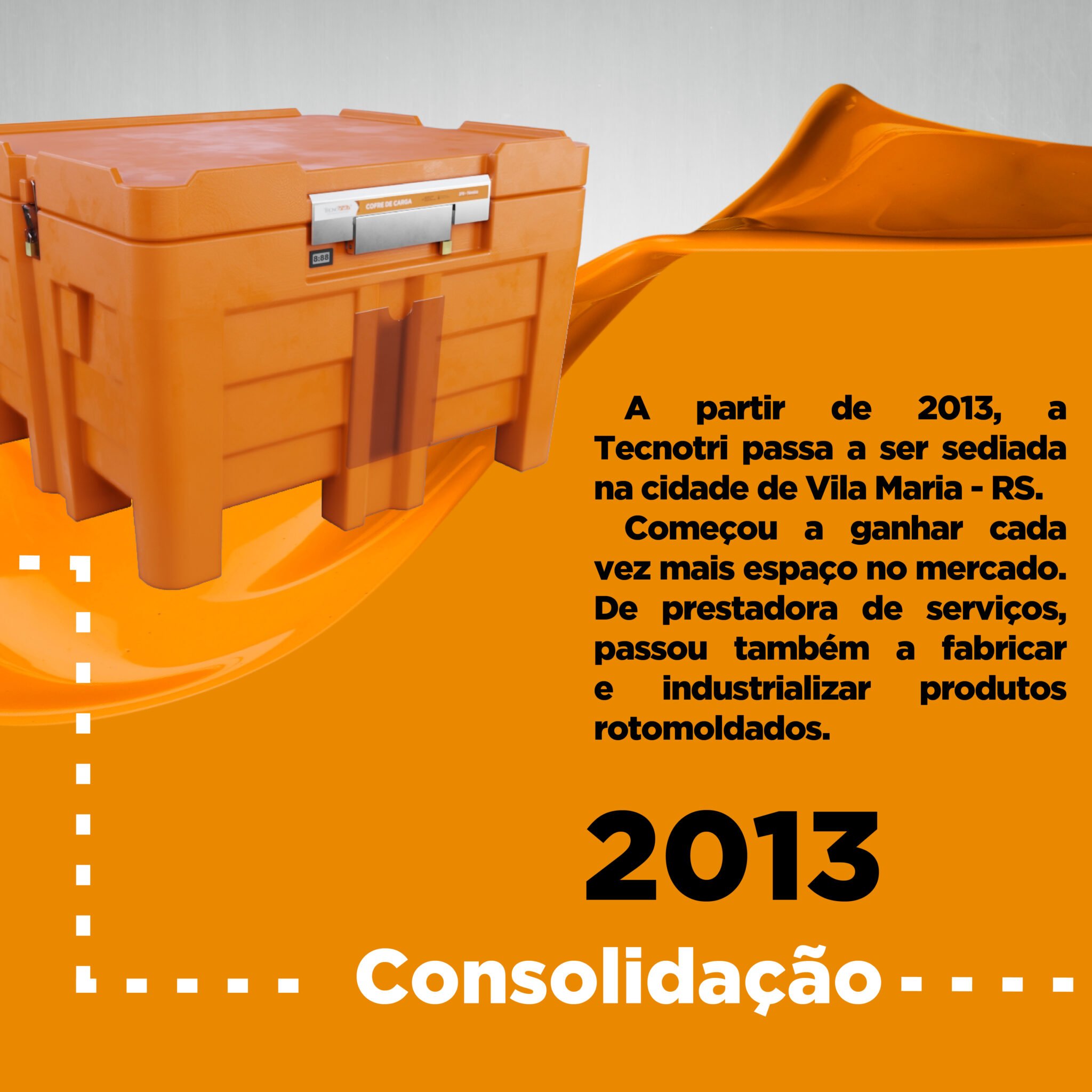 Atualmente, a Tecnotri é reconhecida pela qualidade de sua linha completa de produtos de plástico voltados para a logística interna, externa e reversa das empresas. Mas nem sempre foi assim: no início de tudo, quatro pessoas batalharam intensamente para chegar onde a Tecnotri está hoje. Foi preciso muita dedicação, coragem e força de vontade para fazer acontecer e transformar todo um mercado. Hoje, com o processo de rotomoldagem plástica, a empresa desenvolve uma linha completa de materiais de alta qualidade e tecnologia de ponta. Os produtos são muito utilizados nos mais diferentes setores: industrial, automotivo, químico, agrícola, construção civil, farmacêutico, higiene e limpeza, alimentício e meio ambiente.