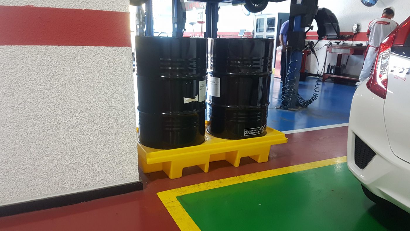 Um dos principais problemas encontrados nas oficinas mecânicas é o modo como os líquidos são armazenados em tambores, galões e outros recipientes. O acondicionamento em pallets de madeira vazados na parte inferior e sem proteção de escoamento contra vazamentos se mostra ineficiente e perigoso ao ambiente e às pessoas.