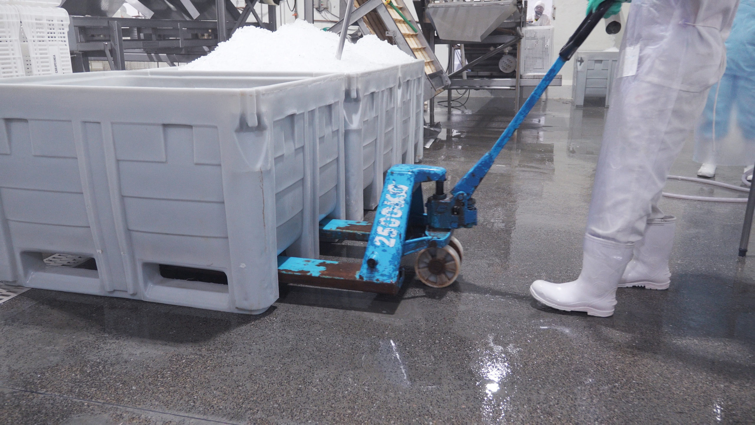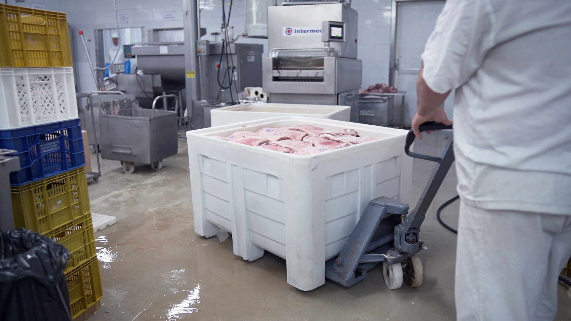 Movimentação e conservação de carnes em ambientes frios, com resistência a baixas temperaturas.