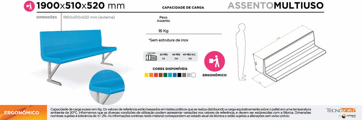 Pensando em atender às necessidades de segurança e ergonomia na indústria, a Tecnotri oferece uma linha de pallets ergonômicos rotomoldados e contentores ergonômicos, desenvolvidos para garantir a segurança e bem-estar dos colaboradores. Um produto monobloco, de fácil higienização. Possui Aditivo UV e atende às exigências sanitárias e de boas práticas de fabricação. Os pallets e contentores ergonômicos têm dimensões, funções, cores e texturas que proporcionam conforto, praticidade e segurança aos profissionais.