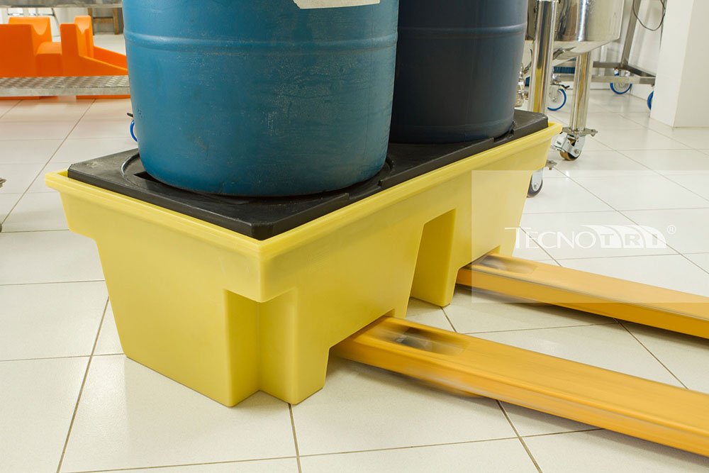 O pallet de contenção, também chamado de dique de contenção e bacia de contenção, possui diferentes formatos e modelos para 1 tambor, 2 tambores e 4 tambores com capacidades variadas de 100L até 1.000L.