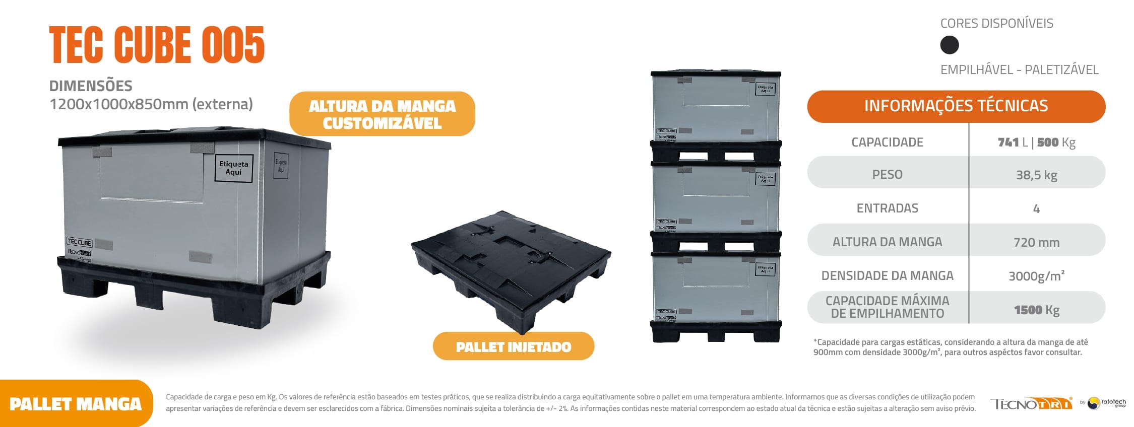 O Pallet Manga TecCube, também conhecido como manga pallet, caixa pallet ou pallet unitizado é muito usado para unificar cargas segmentadas em um mesmo agrupamento de volume. Possui duas opções, em pallet injetado ou soprado. Sua manga é desenvolvida com tecnologia “bubble” proporcionando maior resistência das “paredes” da caixa. Pondendo a altura ser personalizada de acordo com a sua necessidade.