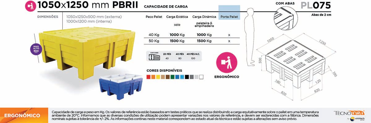 Pensando em atender às necessidades de segurança e ergonomia na indústria, a Tecnotri oferece uma linha de pallets ergonômicos rotomoldados e contentores ergonômicos, desenvolvidos para garantir a segurança e bem-estar dos colaboradores. Um produto monobloco, de fácil higienização. Possuí Aditivo UV e atende às exigências sanitárias e de boas práticas de fabricação.