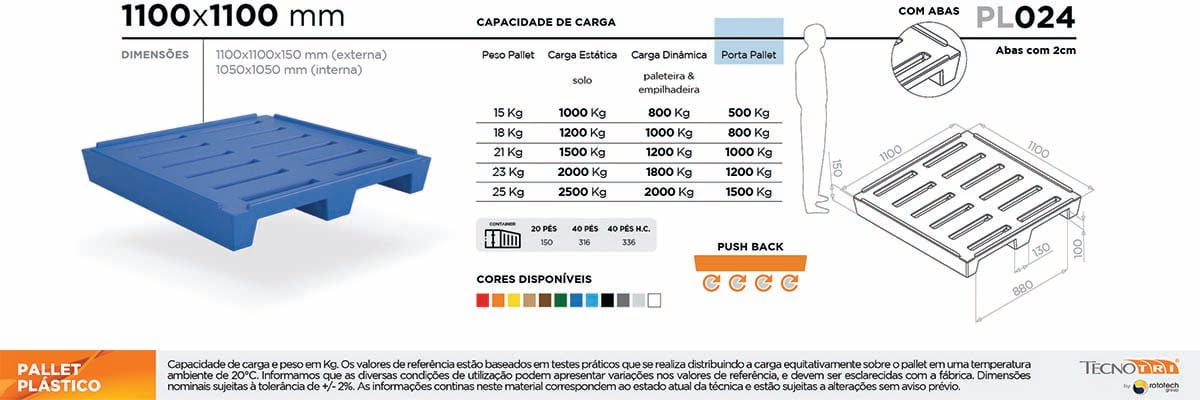 Veja na aba de informações técnicas as capacidades de carga e escolha o pallet PBR ideal para o seu negócio.