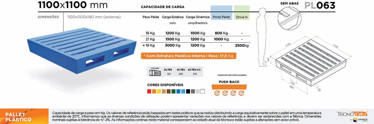 Veja na aba de informações técnicas as capacidades de carga e escolha o pallet PBR ideal para o seu negócio.
