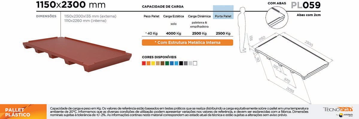 Veja na aba de informações técnicas as capacidades de carga e escolha o pallet PBR ideal para o seu negócio.