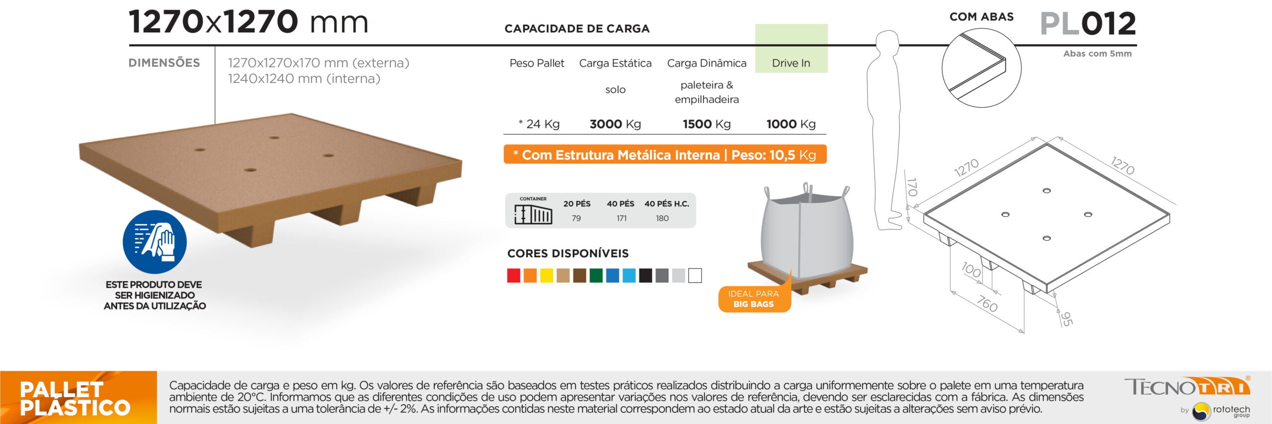 Veja na aba de informações técnicas as capacidades de carga e escolha o pallet PBR ideal para o seu negócio.