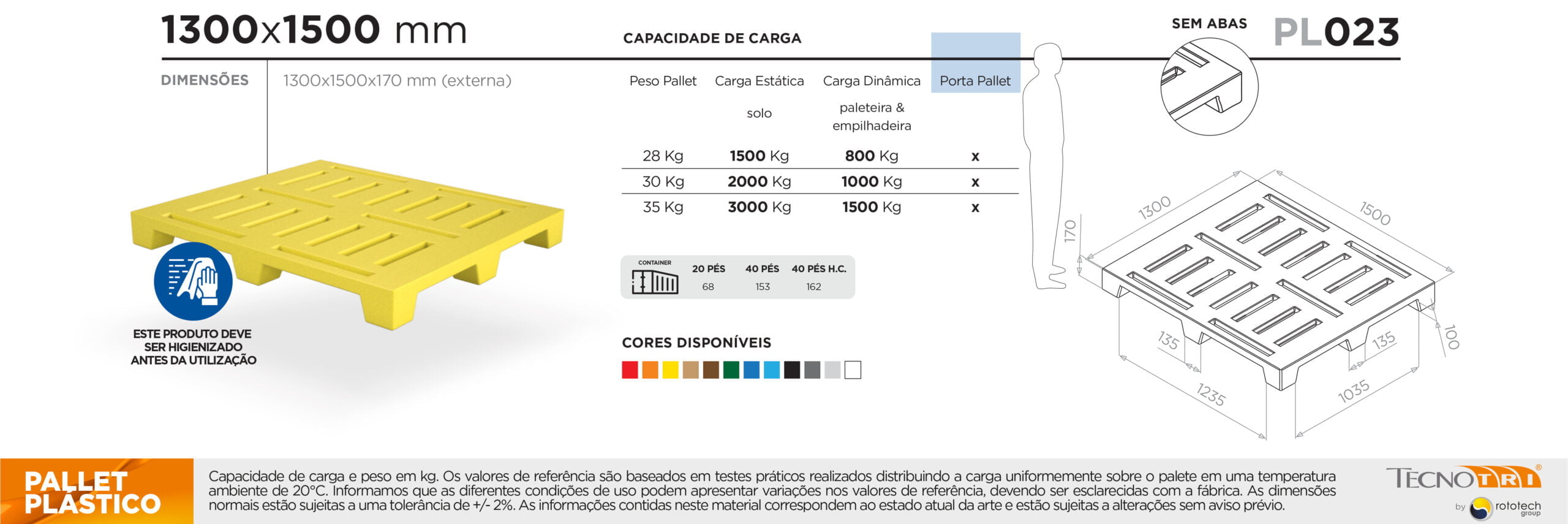 Veja na aba de informações técnicas as capacidades de carga e escolha o pallet PBR ideal para o seu negócio.