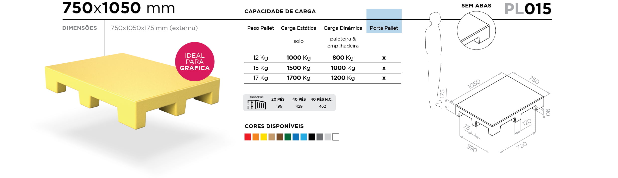 O palete PBR possui as seguintes características: