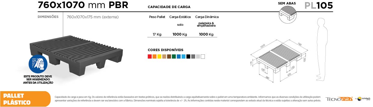 Um fator muito importante na escolha do Pallet Plástico é a capacidade de carga. Existem dois tipos de cargas a serem consideradas a Carga Dinâmica (carga suportada quando o pallet está em movimento na paleteira ou empilhadeira) e a Carga Estática, (carga suportada quando o pallet está apoiado no solo). Uma terceira variante é a capacidade de carga em relação ao sistema de armazenagem que pode ser em Porta Pallet, Drive in e Rack. Veja nas informações técnicas abaixo as capacidades de carga e escolha o pallet ideal para o seu negócio.