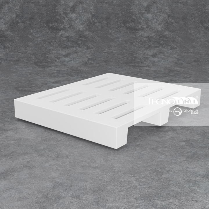 Com 2 (DUAS) entradas, (03 longarinas), Face vazada, Empilháveis, sem aba, Resiste a temperaturas entre -35°C a +60°C, Tratamento com aditivo UV, Material atóxico e fácil de higienizar.