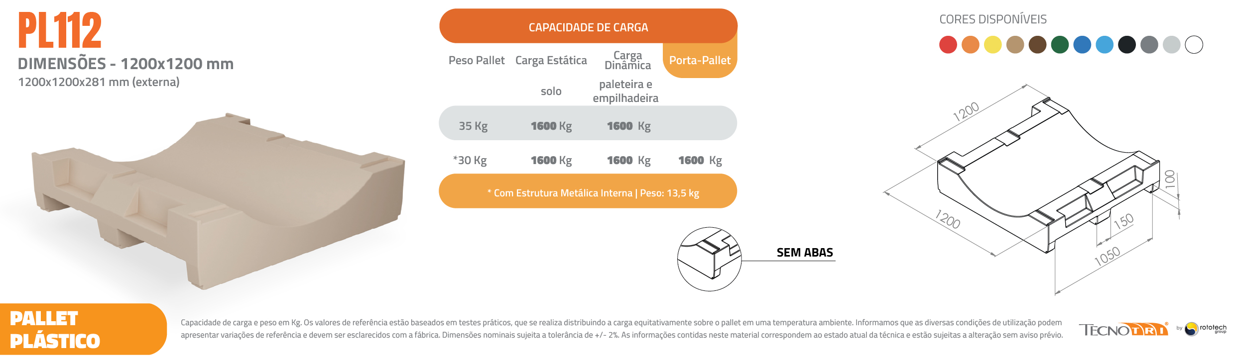 Pallet Plástico 1200×1200 PL112